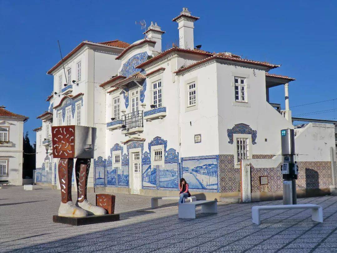 Der alte Bahnhof Estação de Aveiro in Aveiro ist ein kleines und exquisites Gebäude, geschmückt mit traditionellen portugiesischen blauen Keramikfliesen. Jedes Stück Blau-Weiß-Porzellan ist ein wertvolles Kunstwerk. Der alte Bahnhof Estação de Aveiro wird nicht mehr genutzt, aber die Skulpturen und Gebäude in der Nähe sind zu Kunstwerken geworden, die die Menschen bewundern können, was ihn zu einer der interessanten Attraktionen in der Wasserstadt Aveiro macht.