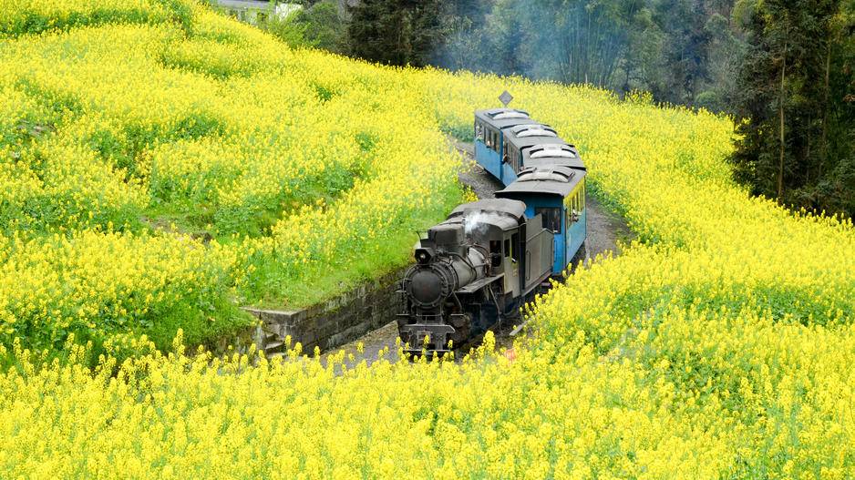 El Tren de Vapor Jiayang es actualmente el único tren de vapor de pasajeros en operación normal en China e incluso en el mundo. Es conocido como el 'fósil viviente de la Revolución Industrial', 'un paisaje único de la Revolución Industrial', y se considera más precioso que el panda gigante. Cada primavera, este lugar se transforma en una escena pintoresca sacada directamente de la poesía. La vida necesita recuerdos tan irrealmente hermosos; el sonido nítido del silbato resuena a través de las montañas. Siéntate bien, ya que el tren hacia las profundidades del mundo de los sueños comienza lentamente.