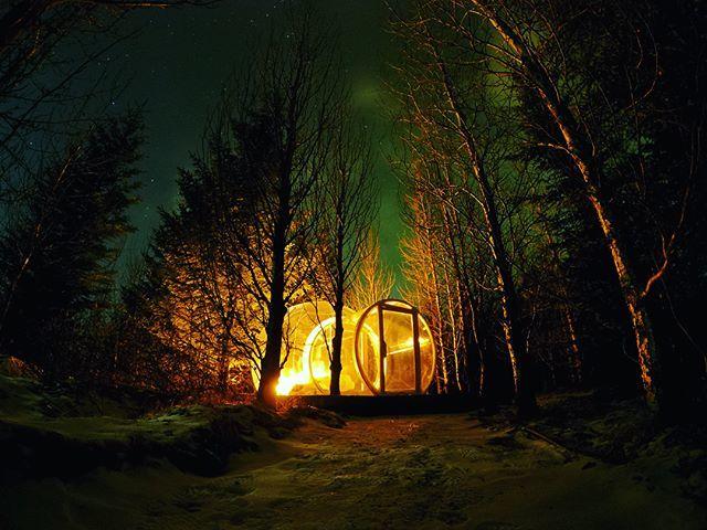 El Hotel de Cinco Millones de Estrellas es un hotel popular ubicado en los densos bosques de Islandia. Cada habitación está hecha de material de PVC transparente, y al mirarlas desde arriba, parecen pequeñas burbujas flotando en el bosque, muy romántico y de ensueño. Cuando el bosque está cubierto de nieve, quedarse en la casa burbuja te aísla del frío exterior. Acostado en la cama, puedes admirar la aurora y el brillante cielo estrellado. Dormir en un entorno tan romántico y ser despertado por la luz del sol de la mañana es una experiencia difícil de rechazar. Si estás buscando una experiencia de auroras y cabañas en el bosque, el Hotel de Cinco Millones de Estrellas es una opción que no debes perderte.