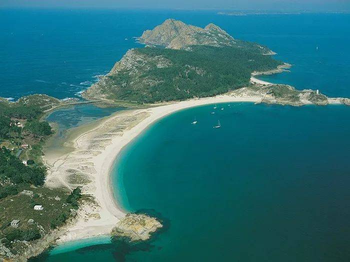 Située sur les Islas Cíes en Galice, Playa de Rodas a été classée comme la 'meilleure plage du monde' par The Guardian. Cette plage, avec son sable blanc fin d'un kilomètre de long et ses eaux turquoise, est envoûtante. Les Islas Cíes sont une réserve naturelle en Espagne, abritant une flore et une faune précieuses. En raison des efforts de conservation, le nombre de visiteurs autorisés sur l'île chaque jour est limité, et les hébergements sur l'île sont très rares. Cependant, la ville voisine de Vigo propose des excursions en bateau quotidiennes vers l'île, ne prenant que 50 minutes pour y arriver.