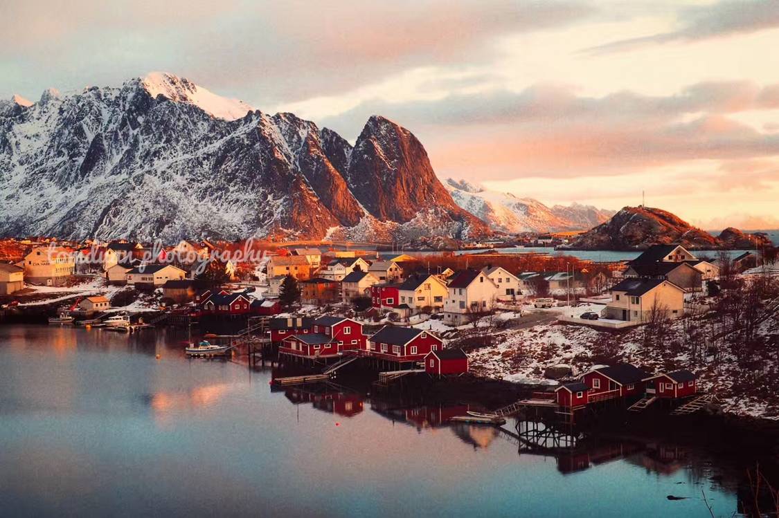 Reine est située dans la partie sud-est des îles Lofoten en Norvège, à proximité de l'autoroute E10. C'est un endroit très beau sur les îles, renommé mondialement pour son titre de 'plus beau village de pêcheurs,' attirant des photographes du monde entier pour capturer son paysage. Les cabanes en bois rouges sont dispersées le long de la côte, rendant l'endroit exceptionnellement charmant avec en toile de fond des pics glaciaires non sculptés. Vous serez étonné qu'un paysage aussi parfait avec des îles dans la peinture existe vraiment dans le monde ! En visitant ici, vous ressentirez un sentiment de tranquillité, de sérénité et de charme pastoral, comme si vous étiez entré dans un monde de conte de fées magique.