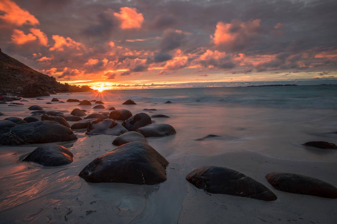 Le sable blanc et l'eau azur ici se complètent, créant un paysage d'une beauté époustouflante. Les formations géologiques rocheuses sont très riches et particulières, surtout sous les lueurs du coucher de soleil, les rendant encore plus à couper le souffle. De plus, vous pouvez monter à cheval le long de la plage, non seulement pour profiter du charmant paysage côtier, mais aussi pour découvrir les vestiges culturels laissés par l'ancienne époque viking.