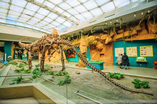 생명 연대는 약 1억 4천만 년 전의 마멘치사우루스도 여기에서 볼 수 있습니다. 마멘치사우루스는 몸길이 22미터, 높이 약 4미터, 목 길이 9미터에 달하며, 생존 시 추정 무게는 40톤에서 50톤에 이릅니다.