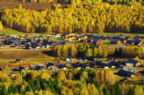 중국과 카자흐스탄의 국경 강변에 위치한 신장 알타이 지역의 투바족이 가장 많이 모여 사는 마을로, '중국 서부 제1촌'으로 불립니다. 사계절 내내 그림처럼 아름답지만 특히 가을이 가장 아름답습니다. 황금빛의 포플러 나뭇잎, 연한 노란색의 낙엽송, 자유롭게 흐르는 황금빛이 산촌을 둘러싸고 있어 마치 동화 속 세계 같습니다.